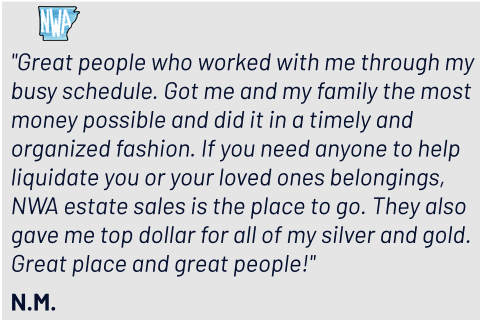To see what our customers are saying about us, please read some of NWA Estate Sales Reviews.
